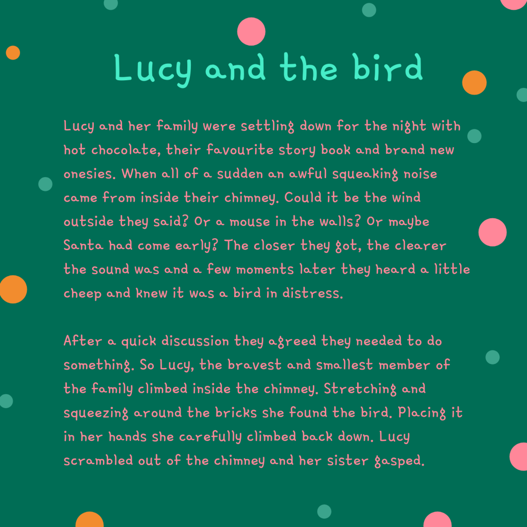 - Invitational Flyers put a flyer in each bag. I’ve written a story called Lucy and the bird. This is very simple with the aim of raising curiosity, you can add a link to your church social media for more information