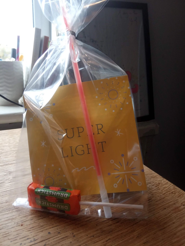 6. Create gift bags (Invitational postcard/flyer, clear bag, sweets, Christmas tattoo’s)